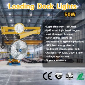 30W 50W LED Loading Dock light 3000K 4000K 5000K 43.53″ Arm On/Off Switch All in 1 Lamp