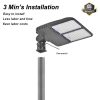 BUILT TO LAST – 100,000 LED saves having to replace bulbs- Aluminum Housing with high tech Heat Sink. Better Heat dissipation ensures longer LED life and safety. IP65 Waterproof for all weather conditions. All backed by a 3 year warranty.CERTIFIED – ETL Listed and DLC Premium verified for safety and rebate eligibility. UL Certified products ensure better quality, safety and reliability.Module lens design makes the lamp own well suited lighting dis-tributing for LED parking lots.Hollow out heat sink design makes the lamp lighter and better at heat dissipation. Installation angle -90~+90° adjustable.Beautiful appearance, using Lumileds 3030 LED chips and high quality driver.IP65. ETL & DLC listed.Multifarious mounting brackets are available.